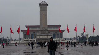 After exploring the Forbidden City we made our way across the street to Tienanmen Square. There is an underground walkway to get there where they have metal detectors and X-ray machines for bags, but the three of us were just waved through. I guess they don't view foreigners as a threat.